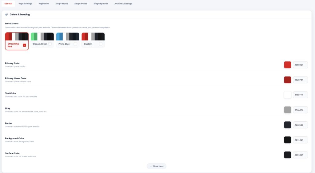 The General settings control your platformβs visual identity, including colors, branding, and UI styling. These settings are applied globally across your website.