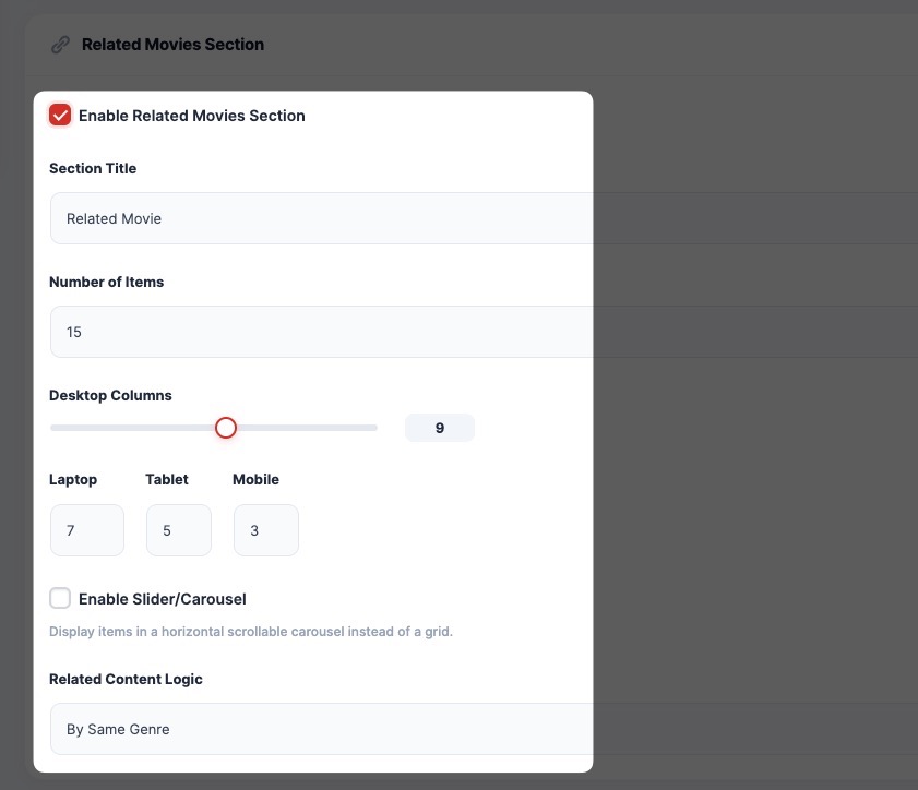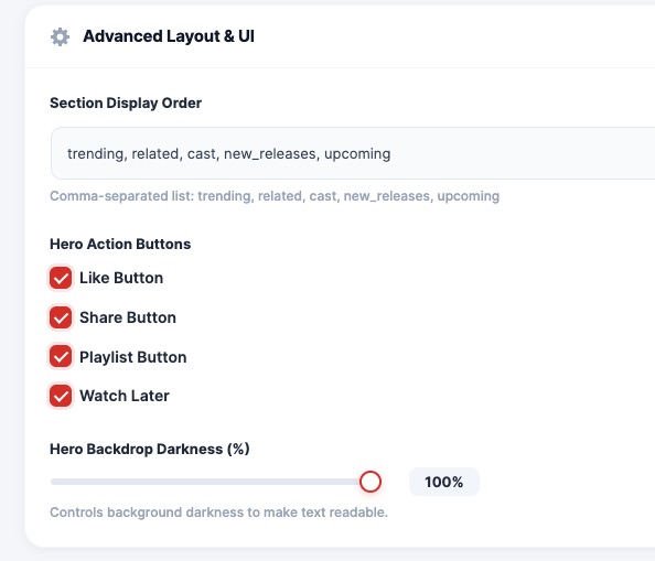 The Single Serise Layout controls how individual movie pages are displayed, including content sections, layout structure, and UI components.