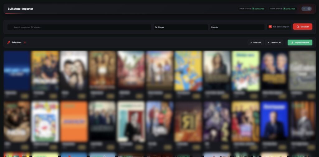 Bulk Import allows you to import multiple movies or TV series at once using TMDb data. This feature is designed to help you quickly build a large content library without adding items one by one.