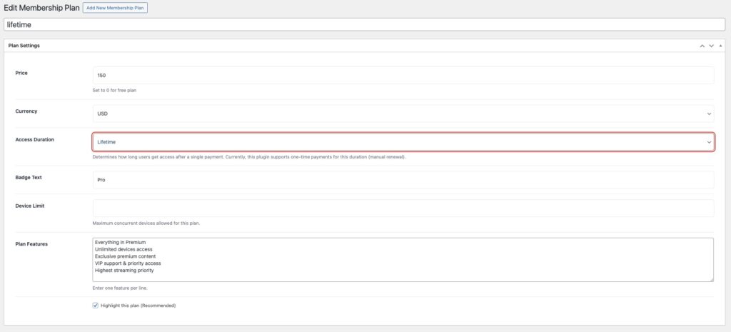 - Lifetime or limited access