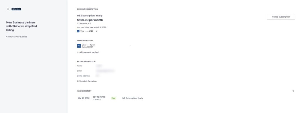 Users can view and manage their subscription.