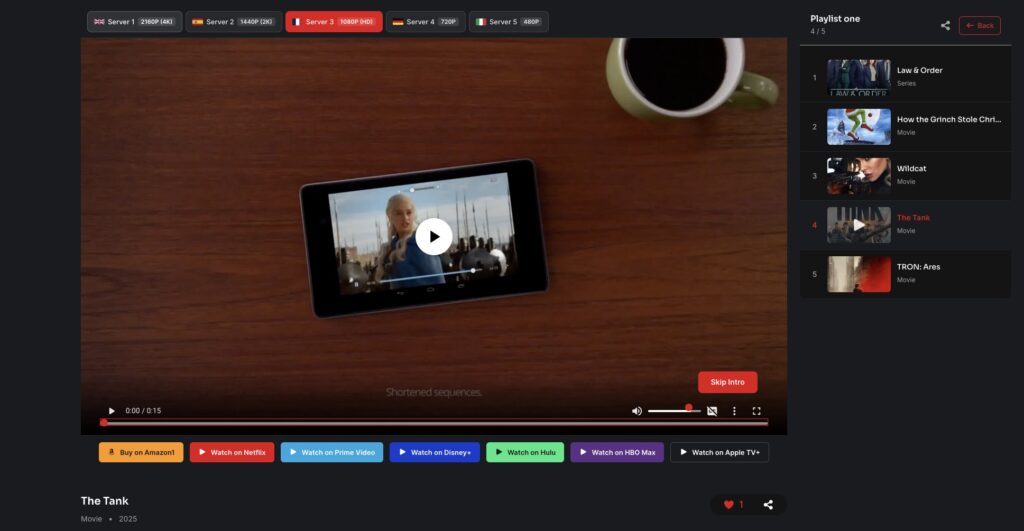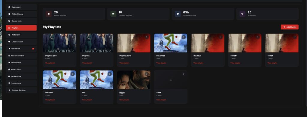 The Playlist feature allows users to organize movies and TV series into custom collections for easier access and better content management. Unlike the Watchlist (which is a simple “save for later”), playlists provide a structured and personalized way to group content based on user preferences.